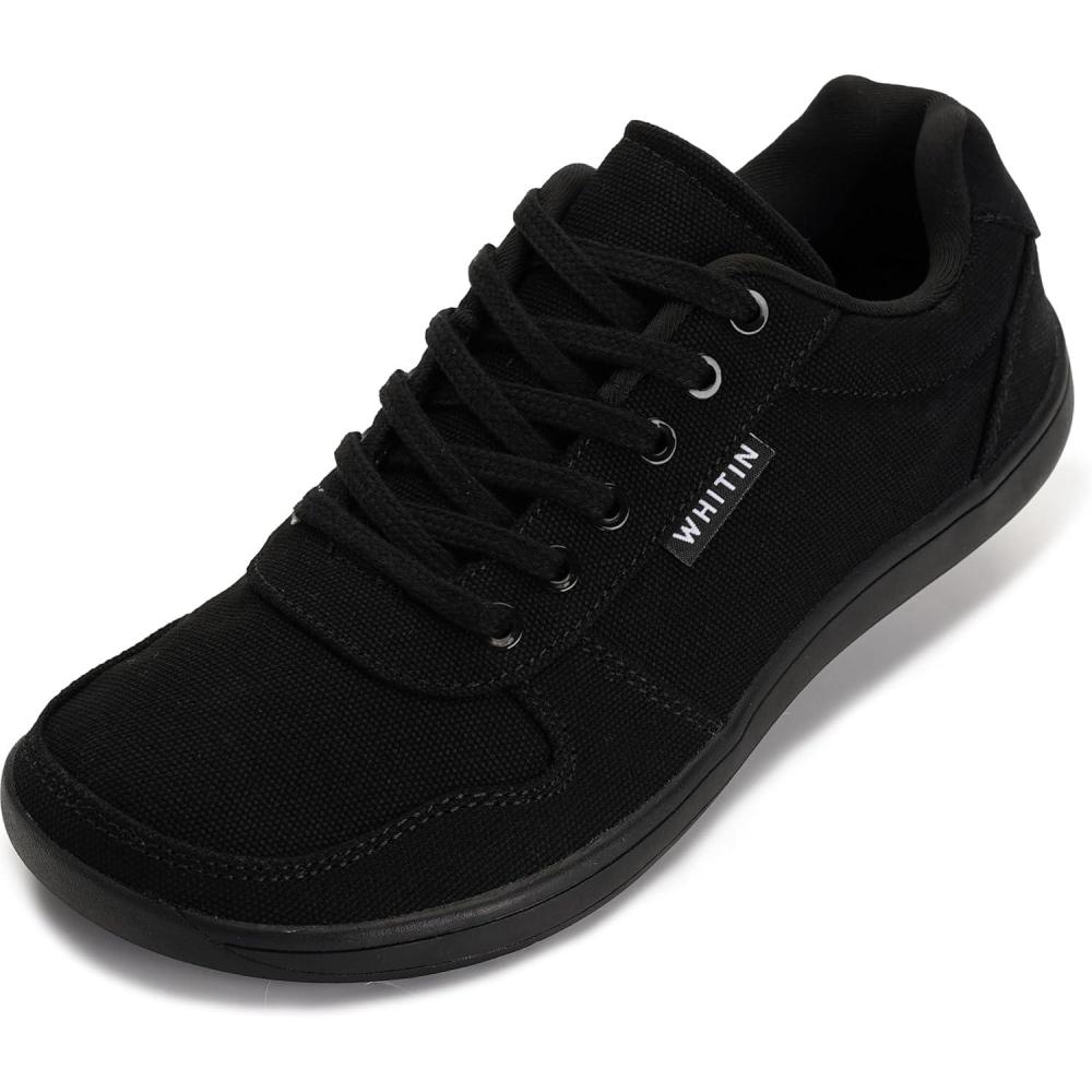 WHITIN Wide Toe Box Barefoot Sneakers for Women | Lightweight Canvas Minimalist Shoes(All Black)