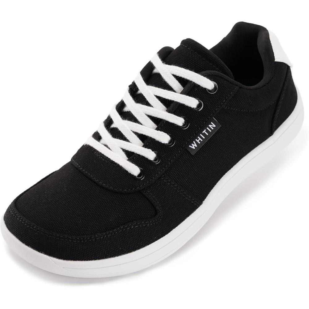 imageWHITIN Wide Toe Box Barefoot Sneakers for Women  Lightweight Canvas Minimalist ShoesBlack White