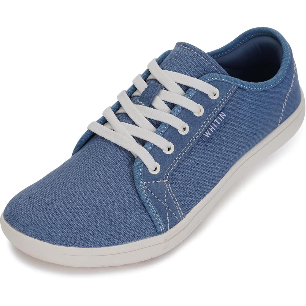 imageWHITIN Womens Canvas Barefoot Shoes  Wide Width Minimalist Sneakers  Classic Fit Low TopW81v2  Canvas Blue Begie